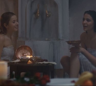 Within the privacy and egalitarian atmosphere of the Hammam, women from two different families gather to swiftly overcome the initial "stranger" phase. The natural and intimate environment of the bath provides an opportunity to bond away from the constraints of formality, dissolving potential tensions long before the wedding day